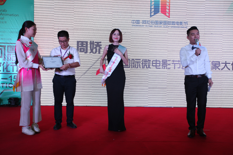 魏軍為2016中阿國(guó)際微電影節(jié)公益形象大使周嬌授牌