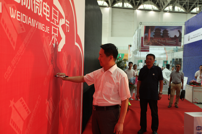 左一,中阿國(guó)際微電影節(jié)組委會(huì)主席、寧夏回族自治區(qū)微電影協(xié)會(huì)會(huì)長(zhǎng)魏軍,左二寧夏回族自治區(qū)黨委宣傳部文藝處處長(zhǎng)雷忠,右一,自治區(qū)新聞出版廣電局傳媒處處長(zhǎng)張秀年。