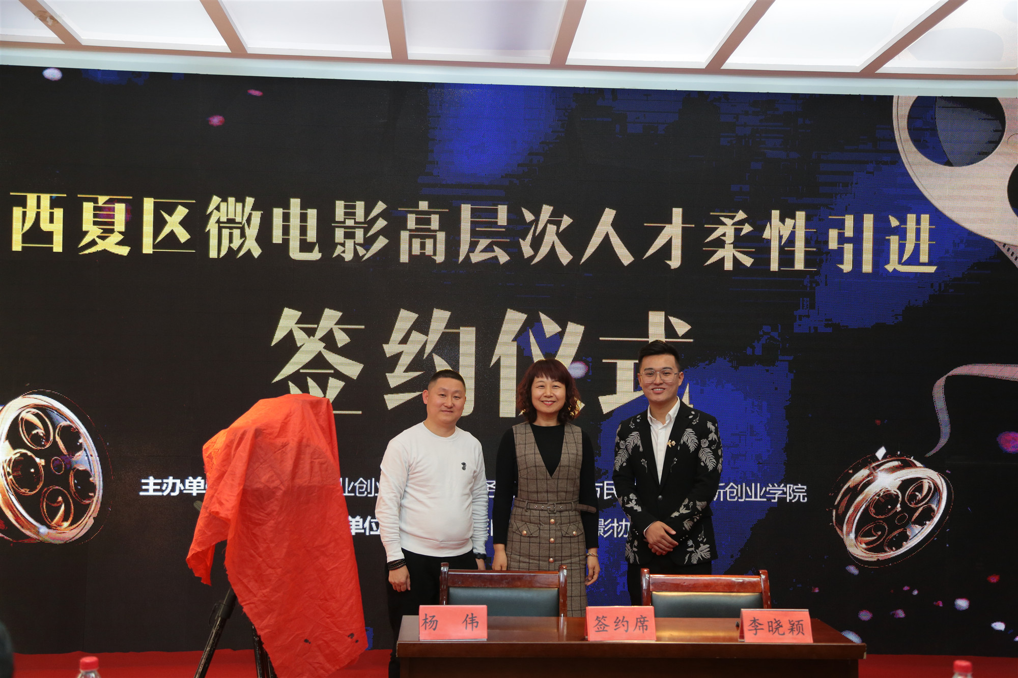 同時(shí)頒獎(jiǎng)典禮之后,為推動(dòng)西夏區(qū)構(gòu)筑人才引領(lǐng)發(fā)展高地,加快西夏區(qū)微電影人才隊(duì)伍建設(shè),打造西夏區(qū)微電影“人才小高地”,借勢(shì)此次盛典,西夏區(qū)微電影高層次人才柔性引進(jìn)簽約儀式召開。簽約儀式上,西夏區(qū)政法委副書記、秘書長(zhǎng)兼西夏區(qū)就創(chuàng)局局長(zhǎng)李曉穎同微電影高層次人才魏亞平、楊偉等,本著雙方“互利共贏、循序漸進(jìn)、重點(diǎn)推進(jìn)、共謀發(fā)展”的原則,簽訂“西夏區(qū)微電影高層次人才柔性引進(jìn)” 協(xié)議,為西夏區(qū)微電影“人才小高地”建設(shè)注入新鮮血液。