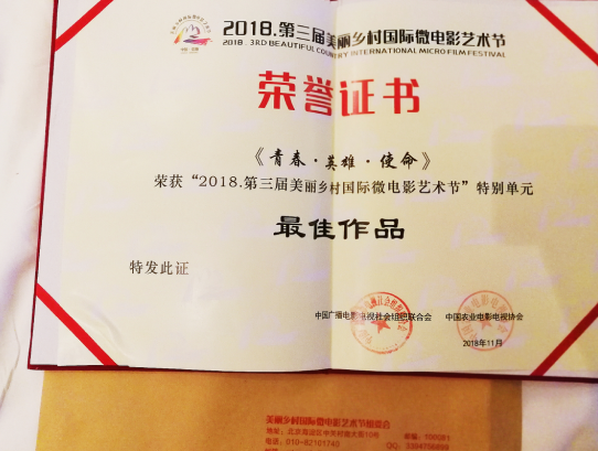 由中國人民解放軍寧夏軍區(qū)、寧夏回族自治區(qū)微電影協(xié)會(huì)、寧夏君臨天下影視傳媒有限公司報(bào)送的公益征兵影片《青春·英雄·使命》榮獲組委會(huì)最佳影片大獎(jiǎng),中國人民解放軍寧夏軍區(qū)征兵影片總導(dǎo)演魏軍及劇組代表參加了頒獎(jiǎng)典禮?!肚啻骸び⑿邸な姑窂牟邉澋脚臄z共計(jì)耗時(shí)30天,影片通過少年子俊、大學(xué)生小王、軍嫂雪梅、老兵爺爺?shù)男〖仪檎宫F(xiàn)了青春、英雄、使命的家國情。剛剛被中國人民解放軍寧夏軍區(qū)授予中國人民解放軍寧夏軍區(qū)公益征兵影片優(yōu)秀奉獻(xiàn)導(dǎo)演的魏軍表示:“崇尚榮譽(yù)、尊崇英雄、精忠報(bào)國是該片展現(xiàn)的主要思想,祖國的英雄和榮譽(yù)是值得我們尊崇和崇尚的,通過普通的人物奉獻(xiàn)詮釋了我們、他們和她們對(duì)祖國的奉獻(xiàn)及捍衛(wèi)?!睋?jù)悉《青春·英雄·使命》先后榮獲第六屆亞洲微電影藝術(shù)節(jié)金海棠獎(jiǎng)、第三屆美麗鄉(xiāng)村國際微電影藝術(shù)節(jié)最佳劇情獎(jiǎng)、最佳電影海報(bào)獎(jiǎng)以及組委會(huì)特別單元最佳影片獎(jiǎng)。