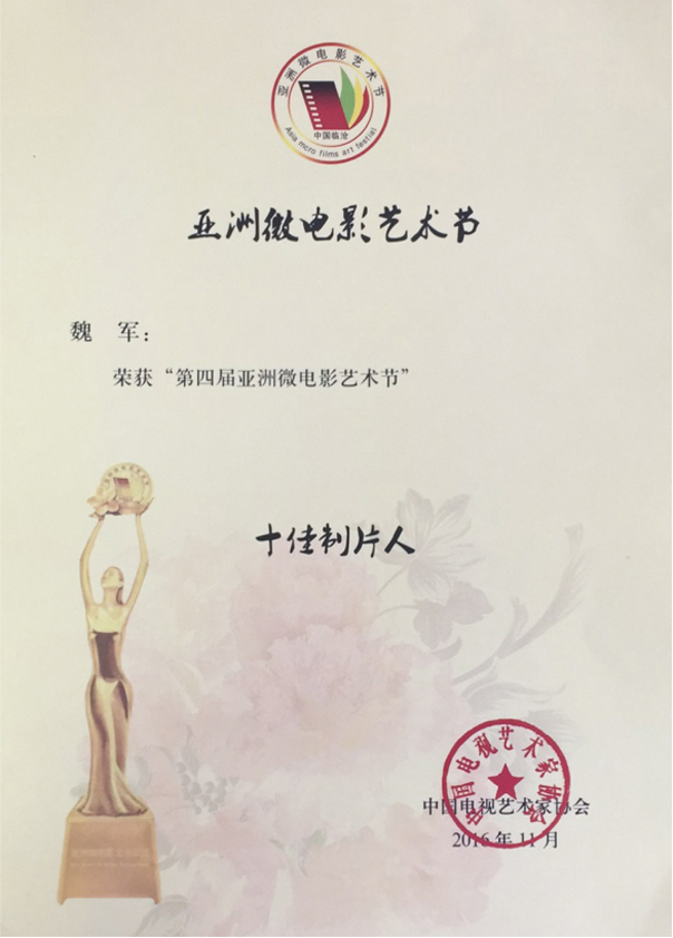 2016年 榮獲第四屆亞洲微電影藝術(shù)節(jié)“十佳制片人”稱號(hào)。